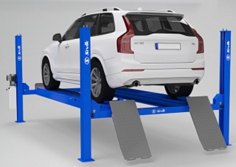 Подъемник четырехстоечный электрогидравлический для поста сход/развал, а также ремонта тормозной и рулевой систем, и других работ.