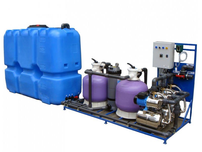После мойки автомобиля вода, содержащая грязь и нефтепродукты, попадает в грязевой отстойник. В резервуарах-отстойниках происходит первичное очищение воды: твердые взвешенные частицы оседают на дне, масло и топливо всплывают на поверхность, и с помощью специальных уловителей удаляются. Далее вода подается через насос в фильтрующую колонну с гравийно-песочным фильтром, где происходит очистка от механических примесей. Затем вода поступает в резервуар для хранения, уже готовая к использованию. Для обеззараживания воды предусмотрена специальная дозирующая станция, подающая в накопительную емкость специальное средство. К аппаратам высокого давления вода подается с помощью насосного модуля, которое создает давление 1,5 – 3,5 атмосфер, что позволяет использовать любой аппарат высокого давления. Контроль уровня воды в резервуарах, включение насосов производятся автоматически.