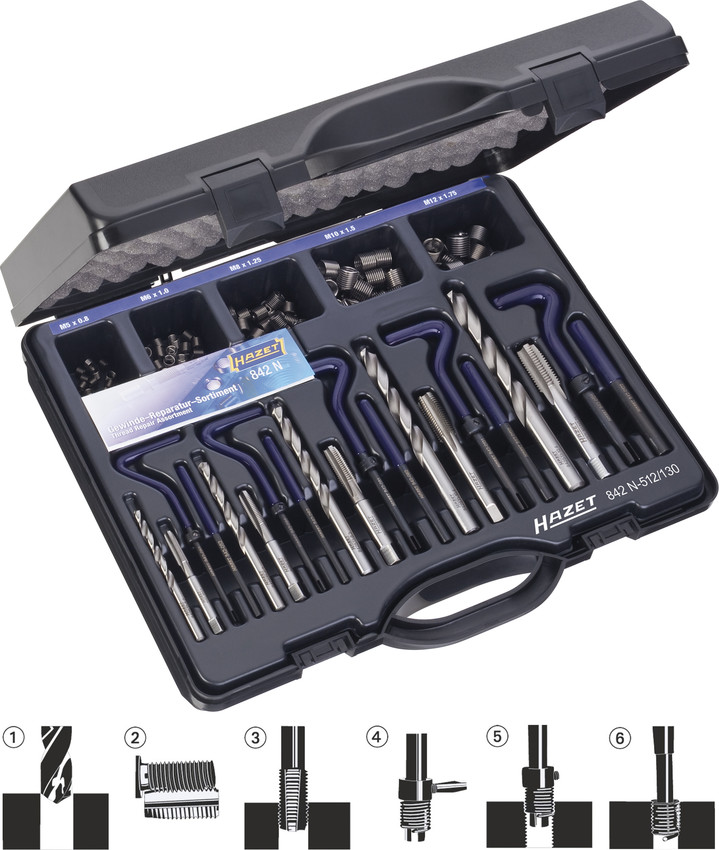 Набор для ремонта и восстановления резьбы Hazet 842N-512/130 купить в Кемерово и других городах России
