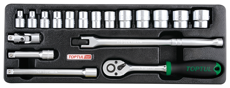 Набор головок и аксессуаров 3/8" 6-24 мм, 18 предметов в ложементе (A) TOPTUL GCAT1808 купить в Кемерово и других городах России