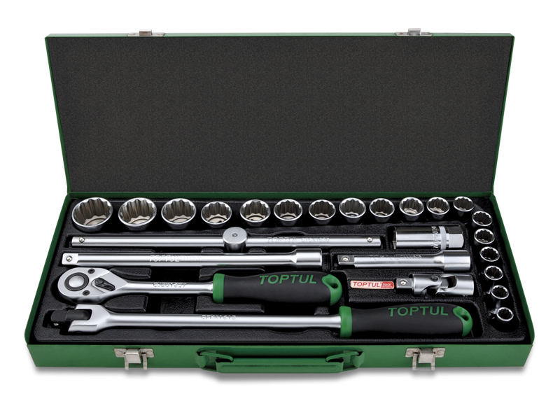 Набор головок и аксессуаров 1/2" 12-гранных 10-32 мм, 25 предметов в метал. кейсе TOPTUL GCAD2512 купить в Кемерово и других городах России